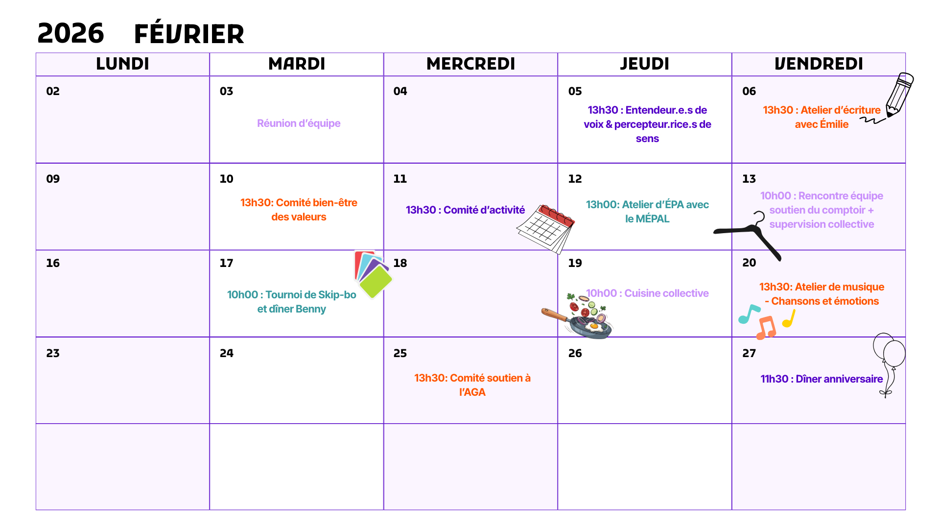 Voici notre calendrier contenant toutes nos formations et activités. Celui-ci est mis à jour mensuellement.